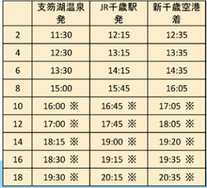 ◾運行路線 新千歳空港 ⇄ JR 千歳駅 ⇄ 支笏湖温泉バスターミナル( 氷濤まつり)